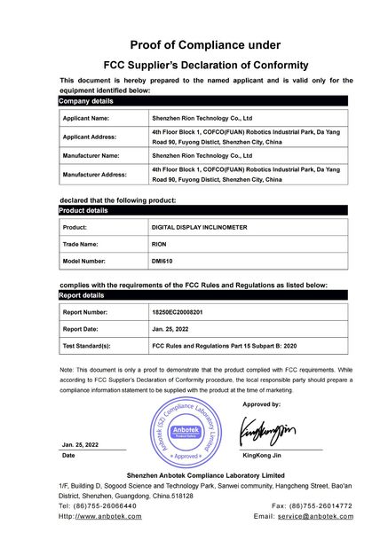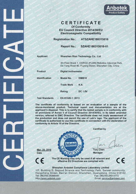 • China RION Touch Screen Bluetooth Single axis Digital Inclinometer With Magnetic Base factory photos